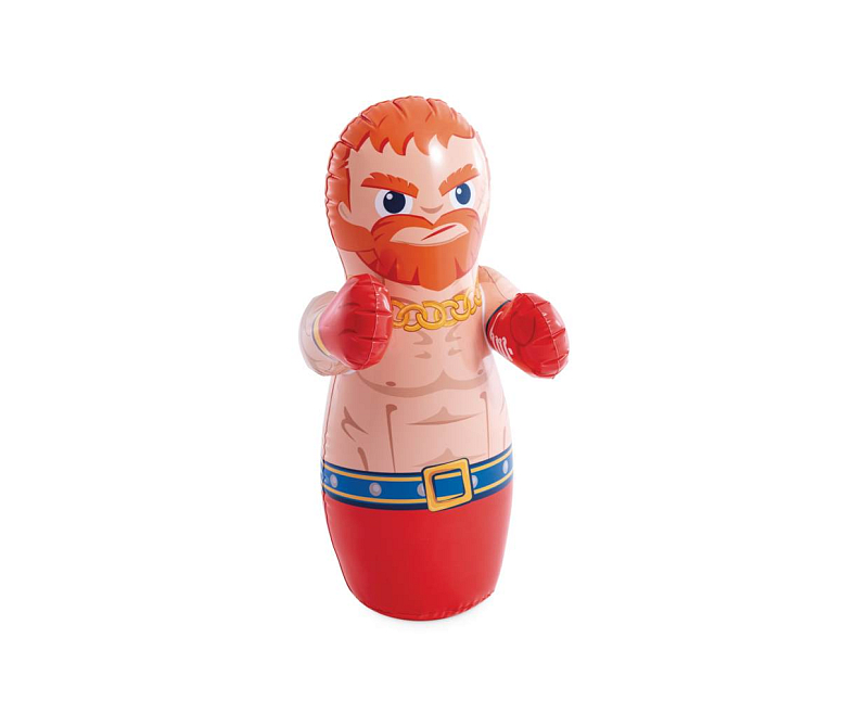 Je nafukovací vstavák určený pro vnitřní i venkovní použití. Boxovací panák udrží svou stabilitu díky vodní zátěži umístěné ve spodní části této hračky. Je určen pouze na pevné povrchy. Nafukovací hračky a potřeby Intex splňují nejpřísnější bezpečnostní normy na zpracování a použité materiály.