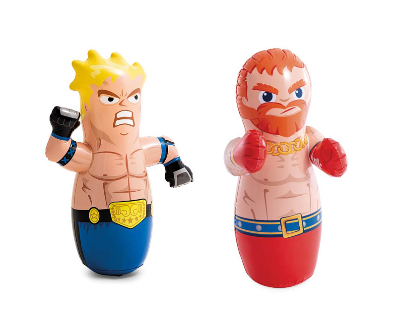 Je nafukovací vstavák určený pro vnitřní i venkovní použití. Boxovací panák udrží svou stabilitu díky vodní zátěži umístěné ve spodní části této hračky. Je určen pouze na pevné povrchy. Nafukovací hračky a potřeby Intex splňují nejpřísnější bezpečnostní normy na zpracování a použité materiály.