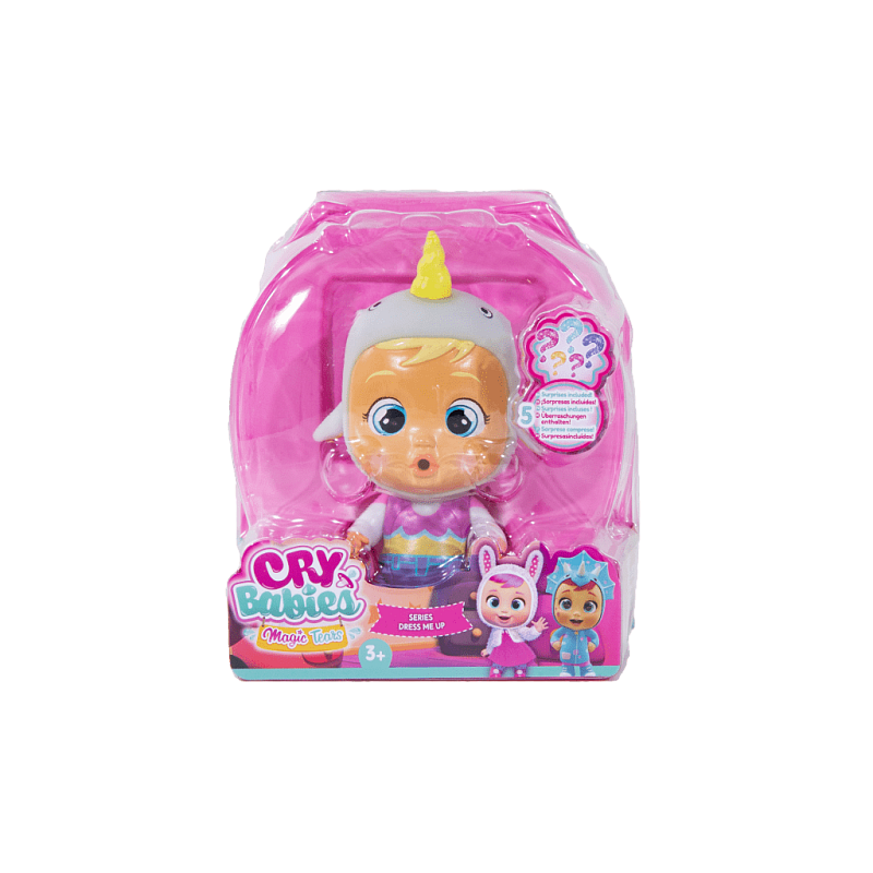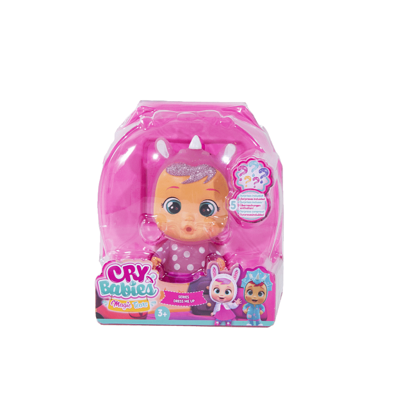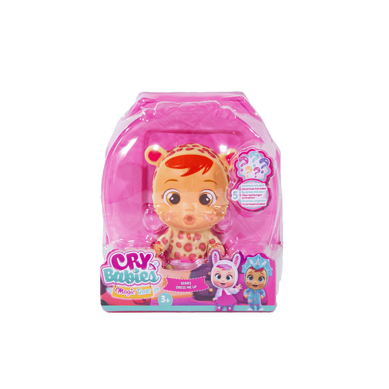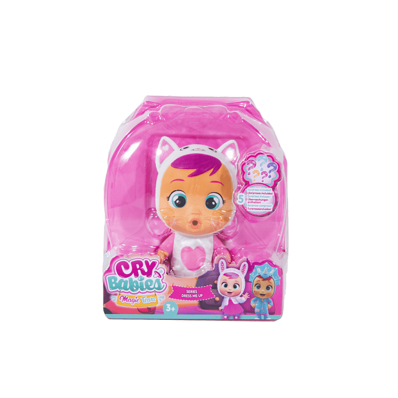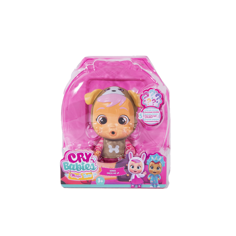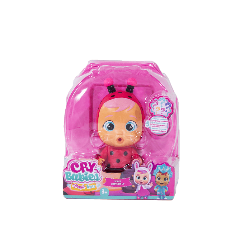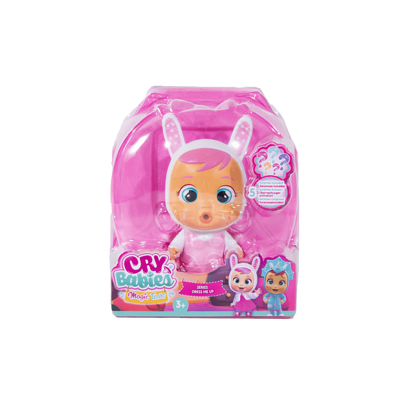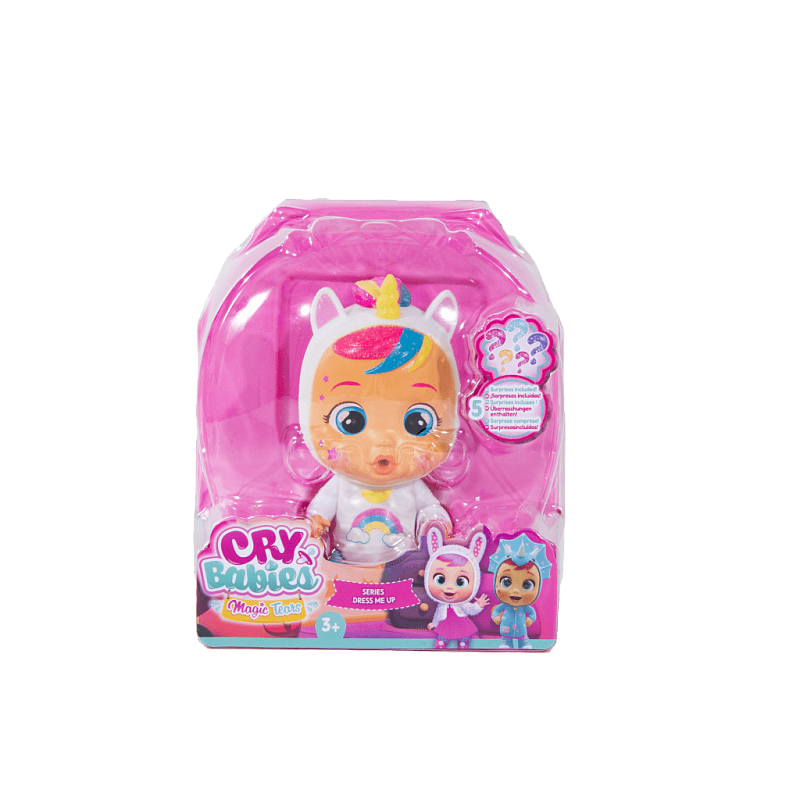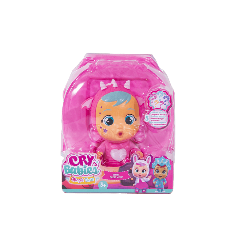 Cry Babies Magic Tears Dress Me Up mix sérií 1 a 2 v průhledném balení ti dovolí vybrat si panenku, kterou máš najradši. Na výběr máš až z 20 panenek a každá s sebou má 7 různých tematických doplňků. Panenku lze napojit vodou pomocí přibalené lahvičky. Když je panenka plná vody, po zmáčknutí bříška začně ronit slzy.