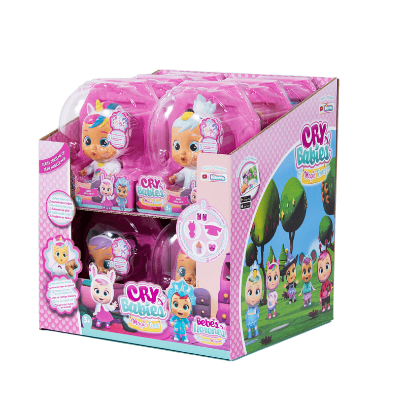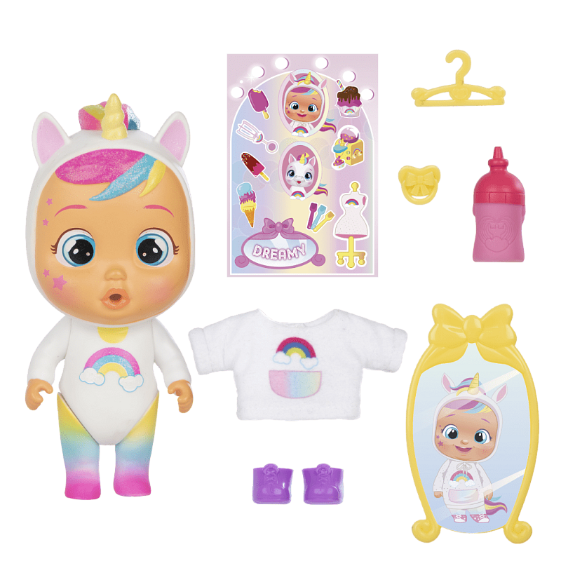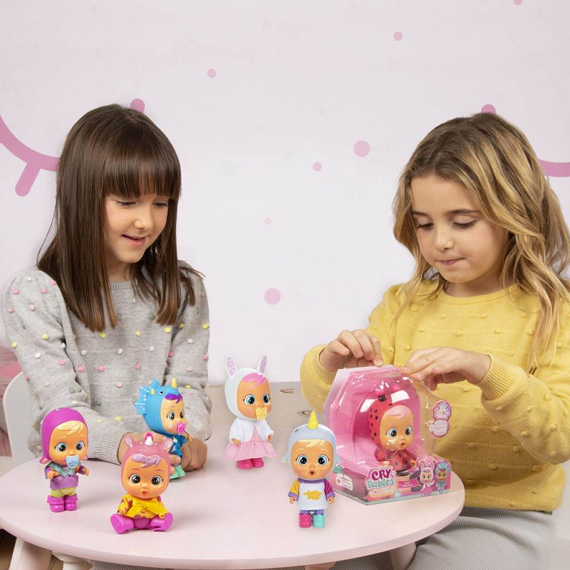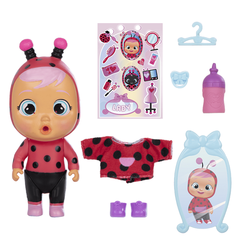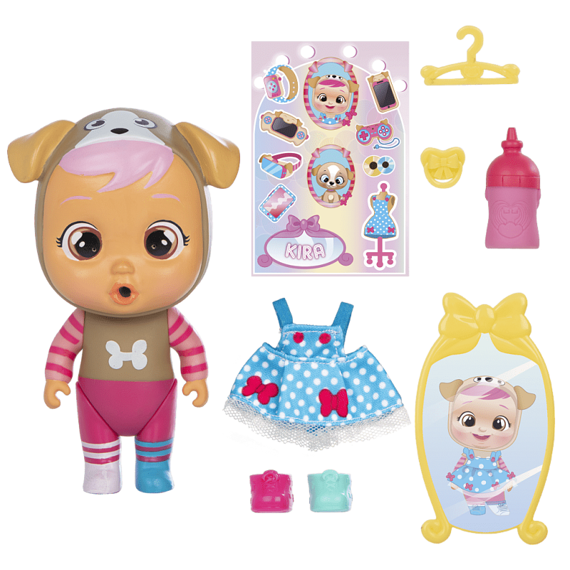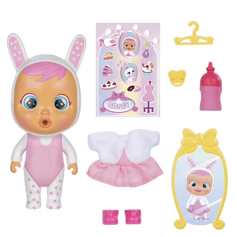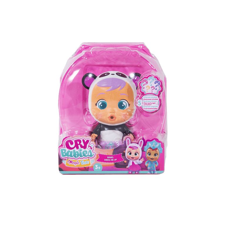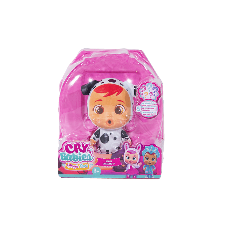 Cry Babies Magic Tears Dress Me Up mix sérií 1 a 2 v průhledném balení ti dovolí vybrat si panenku, kterou máš najradši. Na výběr máš až z 20 panenek a každá s sebou má 7 různých tematických doplňků. Panenku lze napojit vodou pomocí přibalené lahvičky. Když je panenka plná vody, po zmáčknutí bříška začně ronit slzy.