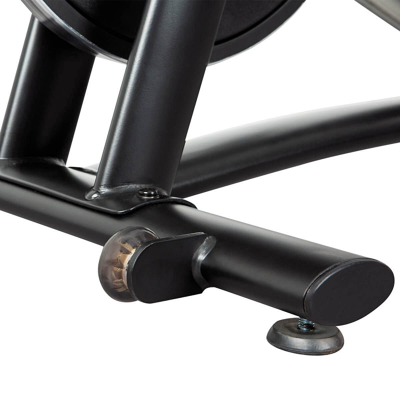 V přední části jsou transportní kolečka pro jednoduchou manipulaci se strojem a samozřejmostí jsou i vyrovnávače nerovností podlahy pro stabilní polohu při každém tréninku.