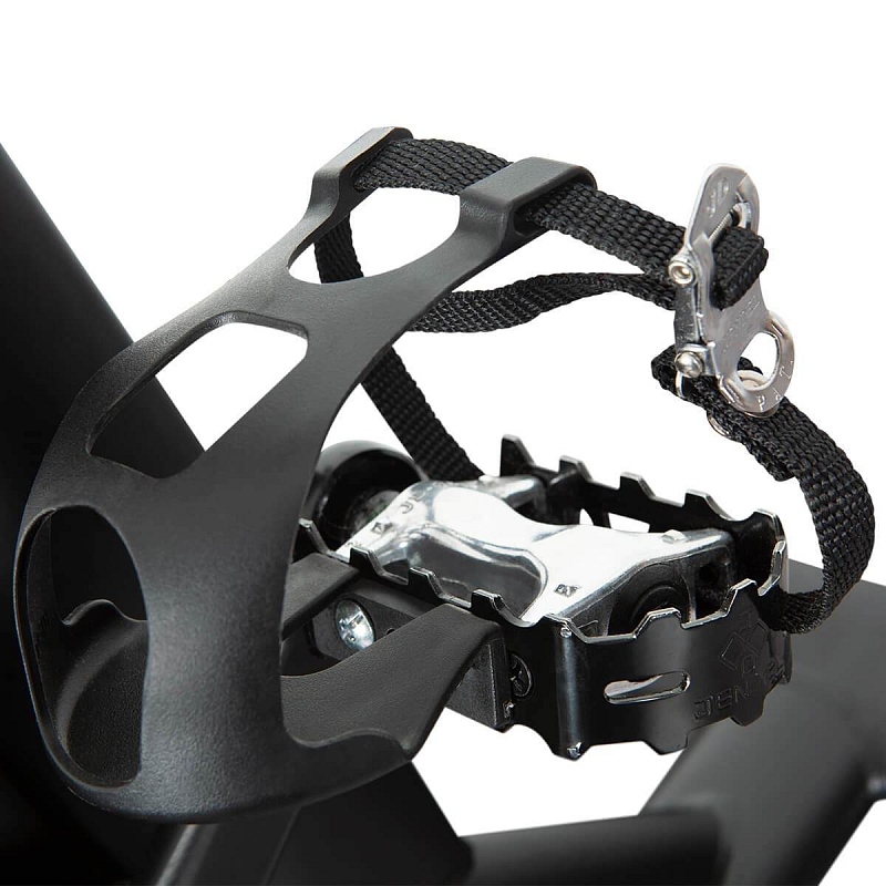 Dlouhodobou životnost stroje zaručuje profesionální šlapací střed s průmyslovými kuličkovými ložisky a klikami na čtyřhran. Pedály mají nastavitelné řemínky.