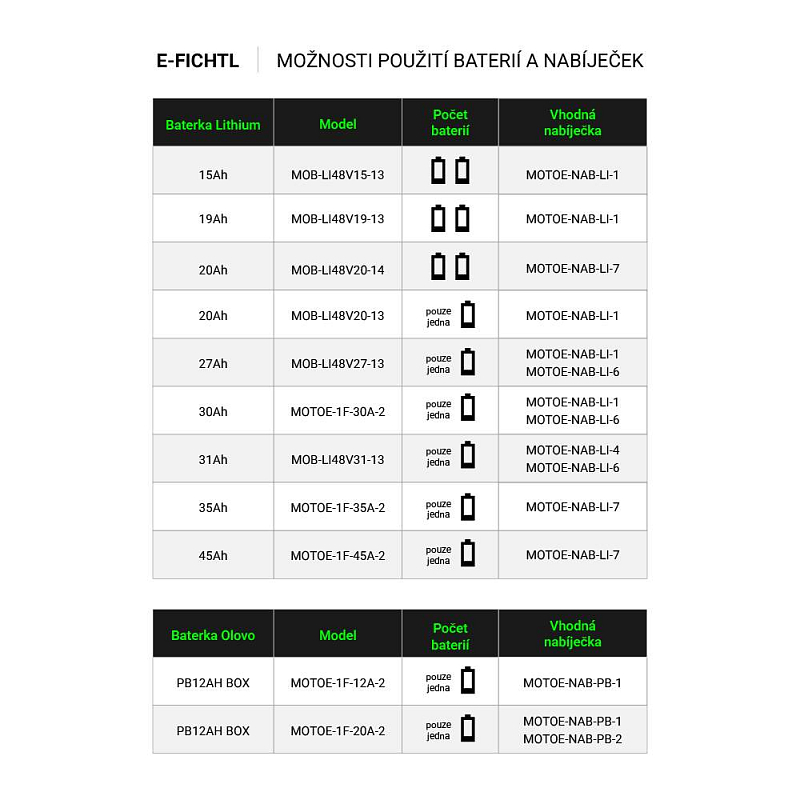 - Baterie kapacita: 12 Ah/20Ah/30Ah Lithium