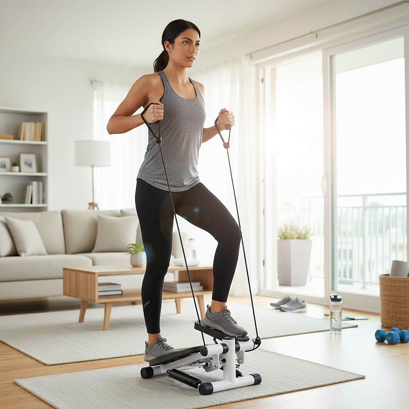 Malý a elegantný stepper, pomocou ktorého môžete získať elegantný, štíhly a pevný zadok vďaka pravidelnému cvičeniu. Výhodou tohto modelu je schopnosť prispôsobiť odpor, a tým aj náročnú úroveň. Pohodlné cvičenia poskytujú široké protišmykové behúne. Pravidelné krokové tréningy urýchľujú spaľovanie tukov na stehnách, bokoch a pásoch. Školenie ďalej posilňuje svaly bedra, stehna (štvorčeky a biceps), svaly dolnej končatiny, zadok a brušné svaly. Cvičenia na týchto strojoch sú vhodné pre ženy a mužov všetkých vekových kategórií. Je to efektívne a rýchle spaľovanie tukov, svalové posilňovanie a práca na zlepšenie kondície.