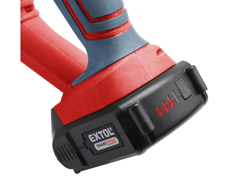 Aku pila ocaska je určena k řezání dřeva, umělé hmoty, kovů a jiných podobných materiálů při práci v dílně, garáži nebo na zahradě. Pružný pilový list umožňuje provádět nejen přímé a obloukové řezy, ale také řezy ve špatně přístupných místech (v rozích, podél zdi), prořezávání stromů. Hlavní výhodou této pily je akumulátorový pohon, který dovoluje si tuto pilu vzít s sebou tam kde s ní potřebujete pracovat, bez ohledu na to, jestli tam je rozvod elektrické energie. Pila má bezpečnostní pojistku proti náhodnému spuštění a je vybavena nastavitelným předkmitem, který si můžete upravit v závislosti na řezaném materiálu. Pro běžnou práci dostačují jeden nebo dva 2000mAh akumulátory, které můžete rychle nabít v rychlonabíječce, pro náročnější nebo delší práci doporučujeme větší akumulátory s kapacitou 4000–8000mAh. Akumulátor lze použít ve všech typech nářadí řady EXTOL SHARE20V. Díky použité Li-ion technologii je ho možné kdykoliv dobíjet, aniž by se tím snižovala jeho kapacita. Li-ion akumulátor ztrácí energii vlivem samovybíjení velmi pomalu a vydrží dlouho nabitý a připravený k použití.