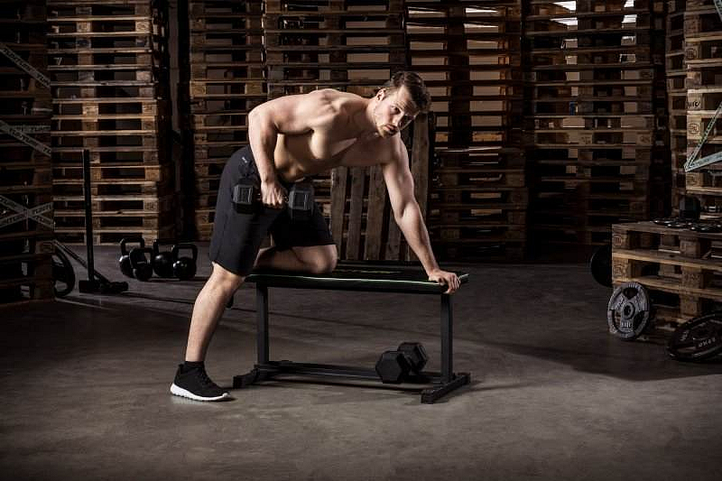 - Robustní rovná posilovací lavice s pevným rámem