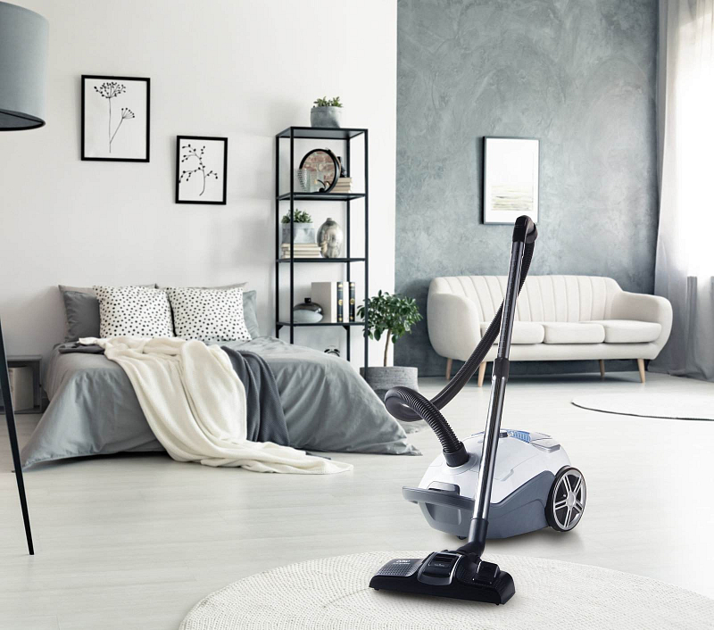 Velmi tichý sáčkový vysavač s objemem prachového sáčku 3 litry a extra dlouhým přívodním. DOMO DO7291S vyniká svými parametry s hodnocením AAAA. Hlučnost pouhých 68 dB dělá z vysavače jeden z nějtišších na trhu. Výhodou je možnost uložení příslušentství (prachové a šterbinové hubice) přímo do těla vysavače. Pakrtická rukojeť a větší zadní kolečka umožňují snadnou manipulaci jak během vysávání, tak i při uskladnění vysavače. Samozřejmostí je možnost nastavení sacího výkonu a ukazatel zaplnění prachového sáčku.