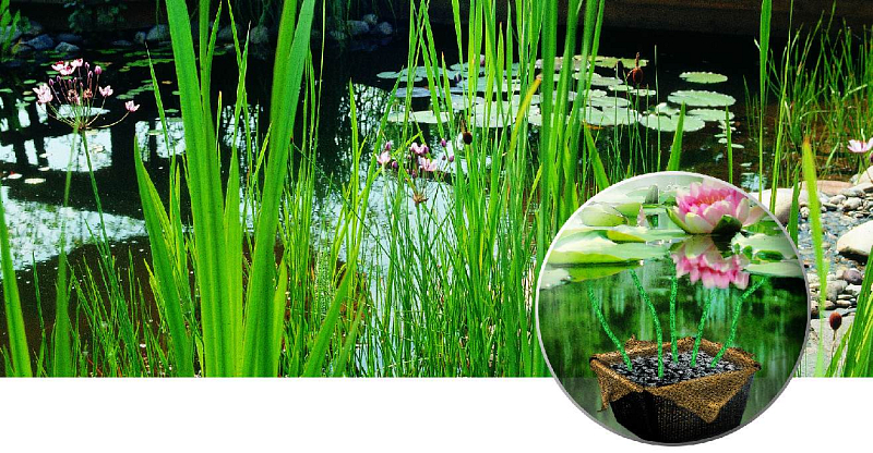 Sada pro výstavbu okrasného jezírka obsahuje: jezírkovou fólii, ochrannou geotextilii pod fólii, jezírkovou podvodní filtraci včetně filtračních médií, bio domečky pro osídlení jezírkovými bakteriemi, filtrační houby pro hrubé nečistoty, čerpadlo s nízkou spotřebou, UV lampu proti tvorbě řas, hadicové přípojky. Jezírkové osvětlení lze použít ve vodě i mimo ni, včetně výměnných barevných sklíček pro změnu barvy osvětlení. Součástí jsou také sázecí koše na vodní rostliny a návod s návrhem na vybudování jezírka.
