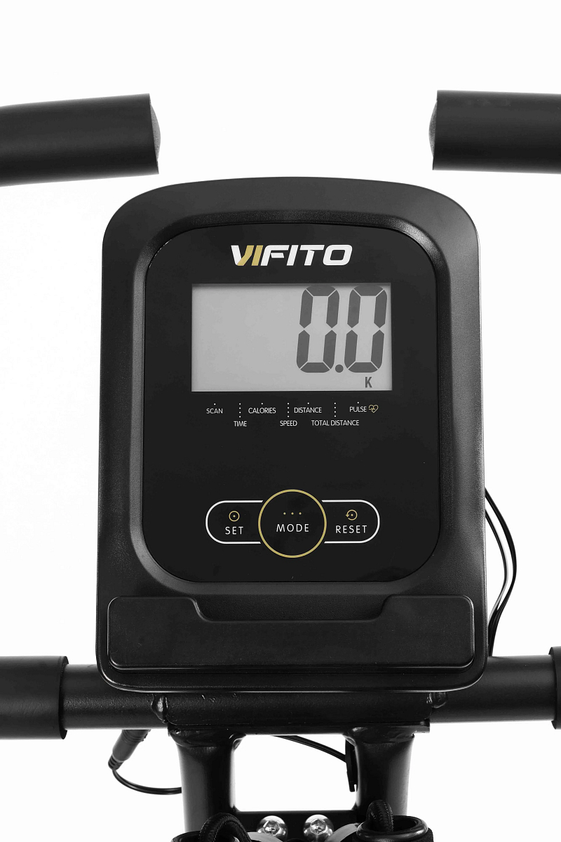 VIFITO Xfit 50 nabízí jednoduchý přehledný LCD displej, který vám vyobrazí všechny základní hodnoty pro váš trénink. Umožní vám sledovat váš trénink v reálném čase pomocí dat monitorujících váš čas, rychlost, vzdálenost, celkovou ujetou vzdálenost, spálené kalorie a srdeční frekvenci. Pro maximální efektivitu tréninku můžete využít měření tepové frekvence skrz dlaňové snímače tepové frekvence (tzv. Hand pulse) na madlech trenažéru.