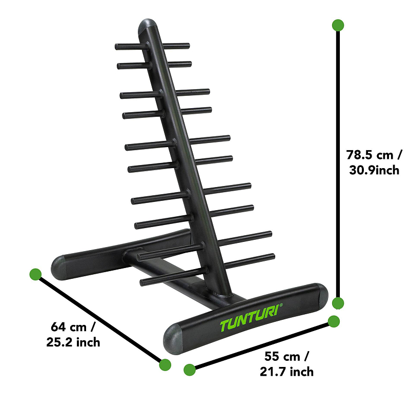 S tímto stojanem na činky Tunturi se vám již nebudou činky povalovat. Stabilní a pevný stojan pojme deset párů vinylových nebo neoprenových činek a je opatřen práškovým lakem, který zabraňuje poškození stojanu i činek.
