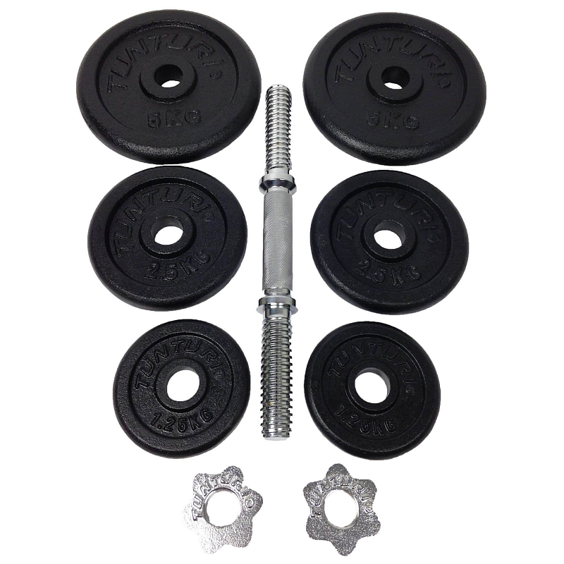 Tato sada činek Tunturi je nepostradatelná, pokud chcete jednoduše trénovat celé tělo. Ideální pro použití doma nebo v posilovně (jedna nebo dvě) pro různé cviky. Činka má ocelovou protiskluzovou rukojeť. Součástí balení jsou 4 různé zátěžové desky. Pohodlné, protože si můžete sami určit požadovanou hmotnost přidáním zátěžových desek na činku. Šroubové uzávěry zajišťují, že závaží zůstanou pevně na svém místě. Velmi příjemné a bezpečné. Vzhledem k široké škále závaží je sada činek vhodná jak pro začínající, tak pro zkušené sportovce.