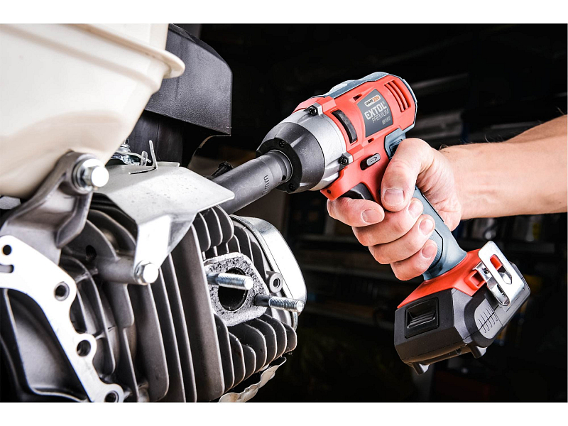 Lehký a výkonný rázový aku utahovák s max. kroutícím momentem 180Nm Vám poskytuje výkon, který potřebujete k dokončení široké škály utahovacích operací – utahování a povolování šroubů. Rázový moment zvyšuje sílu utahováku při šroubování a zároveň snižuje spotřebu baterie. Proto je při šroubování mnohem efektivnější než aku vrtačka a také zašroubuje více šroubů na jedno nabití baterie. Celokovová převodovka zajišťuje bezchybný chod při i vysoké zátěži a přispívá k lepšímu odvodu tepla vznikajícího při práci. Pro běžnou práci dostačují jeden nebo dva 2000mAh akumulátory, které můžete rychle nabít v rychlonabíječce, pro náročnější nebo delší práci doporučujeme větší akumulátory s kapacitou 4000–8000mAh. Akumulátor lze použít ve všech typech nářadí řady EXTOL SHARE20V. Díky použité Li-ion technologii je ho možné kdykoliv dobíjet, aniž by se tím snižovala jeho kapacita. Li-ion akumulátor ztrácí energii vlivem samovybíjení velmi pomalu a vydrží dlouho nabitý a připravený k použití.