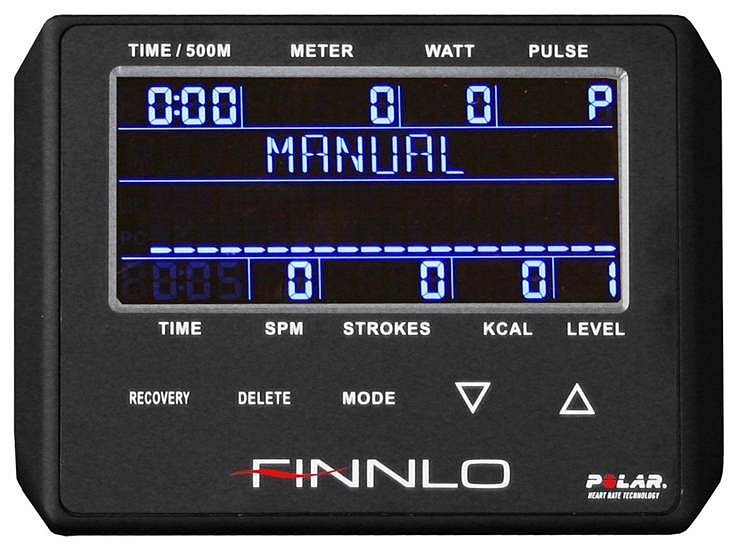 Zobrazenie času / watt / úroveň / ťahov za minútu / programu / pulz / ťahy celkom / čas 500m/vzdálenost a spotreba kalórií