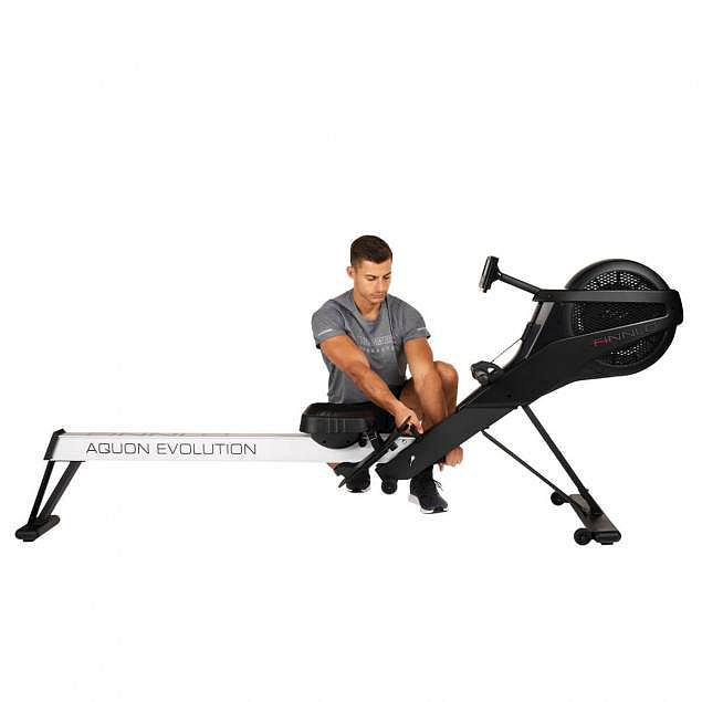 FINNLO Aquon Evolution patří mezi kvalitní veslovací trenažéry, které svým majitelům poskytnou precizně provedenou mechaniku v kombinaci s optimální ergonomií pohybu. Robustní rám disponuje nosností do 150 kg a svou velikostí bude vyhovovat i vyšším osobám. Veslování patří k velmi zdravému pohybu se zapojením množství svalů (při tréninku na veslovacím trenažéru se využívá až 90 % svalů). Aquon Evolution poskytne dokonalé reálný zážitek veslování na vodě a díky svému vysokému výkonu vám připraví intenzivní silový trénink. Stabilní a masivní konstrukce, včetně kvalitních komponentů, zaručuje dlouhodobou životnost stroje i při pravidelném domácím tréninku.