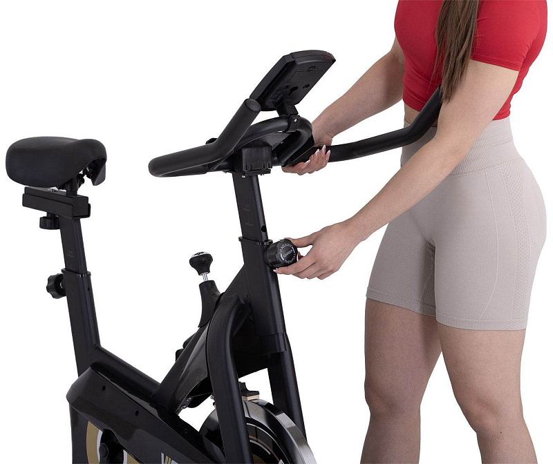 - Manuální regulace odporu prostřednictvím otočného regulátoru a přítlačné brzdy