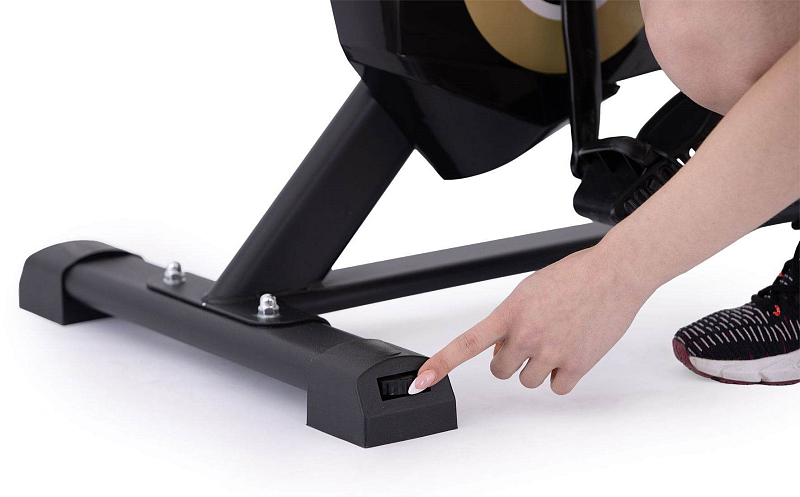 - Díky transportním kolečkům lze trenažér snadno přesunout po místnosti