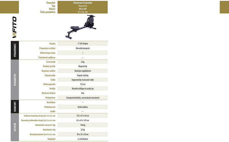 ZÁKLADNÍ VLASTNOSTI TRENAŽÉRU VIFITO Miro 300: